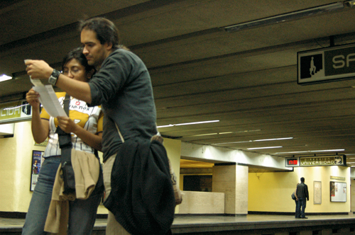 *********************************/ There are inhabitants of the transport system which move around swiftly along its crevices. Very seldom do we encounter them again, but it is unavoidable to meet one of them at any one time. The nomad musicians are special, irreplaceable witnesses of an unwilling memory which brings reminiscences of a forgotten order. Nevertheless, the refreshening possibilities of these heirs of jugglers and trovadores –whom during the European Middle Ages aspired to transform the world with their disrespect to every conventional custom— are rarely acknowledged. This time, we seek to transform a subway train into a public concert hall where the attention is completely displaced onto these actors of the public space. Let the users interchange their roles, let them fluctuate among the wagons in order to hear the different musical offers, and maybe they will find themselves the system fissures. It is possible that their action might be revolutionary not because it explains a practice for themselves, but because it can magnify the intensity of their experience. The creation of new meanings does not only imply the innovative reorganization of objects and forms, it can best be achieved by the invention of new laws capable of displacing the usual layout of that same social order.______________ |